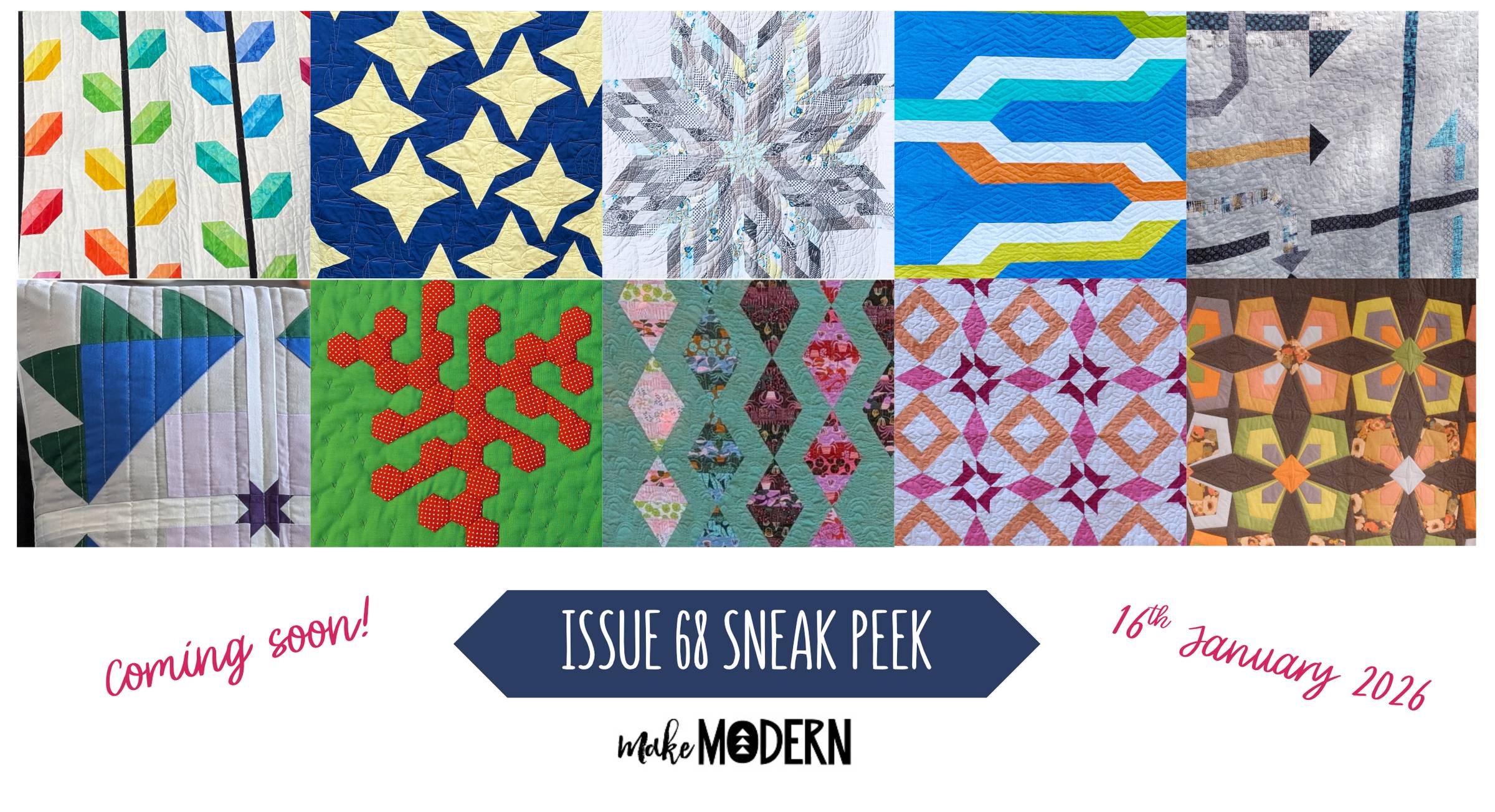 Hello Reader! Happy New Year! We hope that your 2026 is off to a wonderful start, brim full of plans for quilting, creating and playing with fabric. What better way to kick off the year than with a brand new issue of Make Modern? Over 100 pages of quilty goodness, inspiration, great articles, not to mention a whole bunch of projects to get you heading into your sewing space! Sneak peek? I know you want one! 👇👇👇 Issue 68 includes ten new projects to get you diving into your stash and heading...