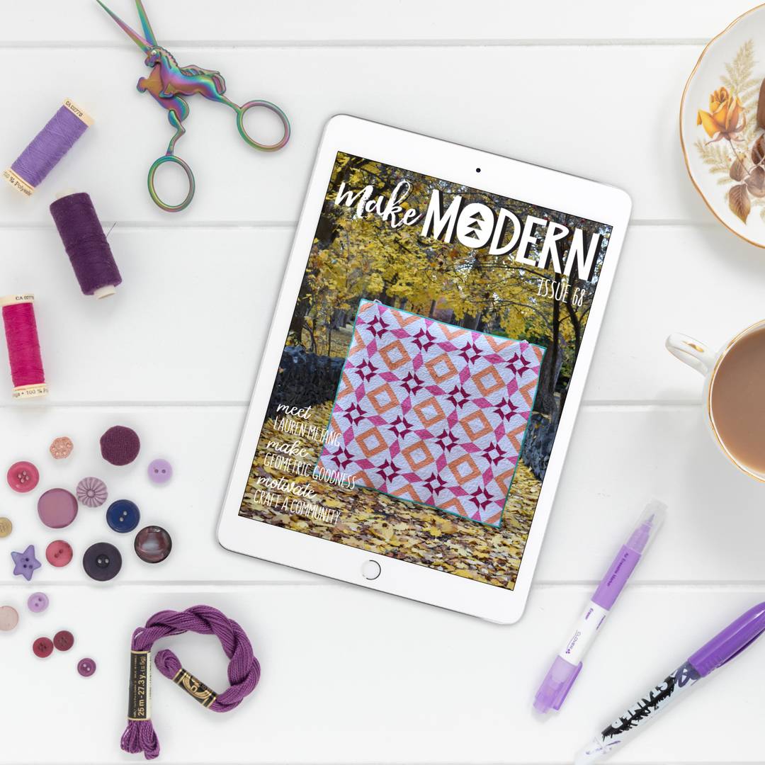For over a decade, Make Modern has inspired quilters in 70+ countries around the globe. Independently published by a team of dedicated Australian women, each issue of our magazine is a treasure trove of patterns, articles, and interviews with quilters. Accessible digitally, read on-the-go, on holidays, and reference patterns while shopping! With no physical storage needed, easy navigation, and eco-friendly delivery, it's a win-win-win! Come and join our global community of passionate crafters!